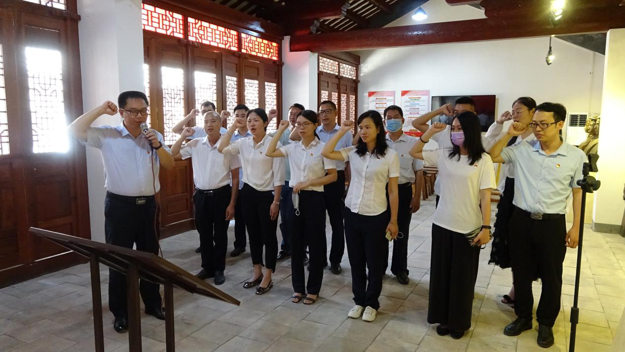 在電城嚴家祠,黨員們懷著無比崇敬的心情,參觀了歷史陳列館、邵貞昌生平資料展區等處,并認真了解革命先輩們為革命拋頭顱、灑熱血的感人事跡。在歷史文物展臺,黨員們邊聽邊看,邊走邊思,通過一件件舊文物回顧烽火連天的崢嶸歲月,感受老一輩黨員和革命家團結一致,同國民黨反動派進行殊死搏斗的大無畏精神。